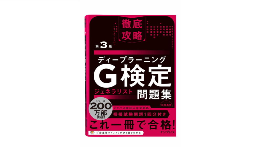 1回目の受験で使用した問題集は「徹底攻略ディープラーニングG検定ジェネラリスト問題集 第3版 徹底攻略シリーズ」です。